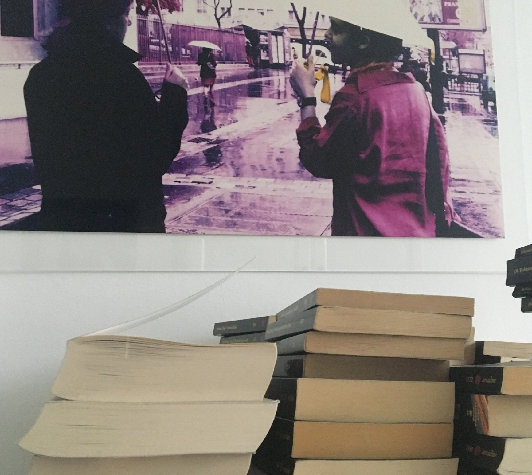 Im Home Office ist manches besser. Viele gute Bücher liegen griffbereit. An den Wänden hängt Kunst, die einen persönlich berührt (hier: Dank an und Copyright von Sabine Felber). Im Home Office ist manches schlechter. Die Kolleginnen und Kollegen trifft man nicht zufällig in der Kaffeeküche oder auf dem Flur. Natürlich kann man sie anrufen, und das passiert öfter. Aber das aktive Telefonat oder der Videocall fallen nicht jedem Menschen so leicht wie das kurze Gespräch, das sich zufällig ergibt. Auch einige andere kommunikative Büro-Situationen funktionieren nicht mehr wie gewohnt. Was also tun, wenn man für die interne Kommunikation im Unternehmen verantwortlich ist? Hier drei Ideen. Ich freue mich auf Feed-back.